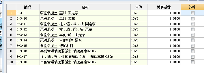 在套混凝土定额时,一般会弹出来一个子目关联:泵送混凝土 泵车、泵送混凝土 固定泵……